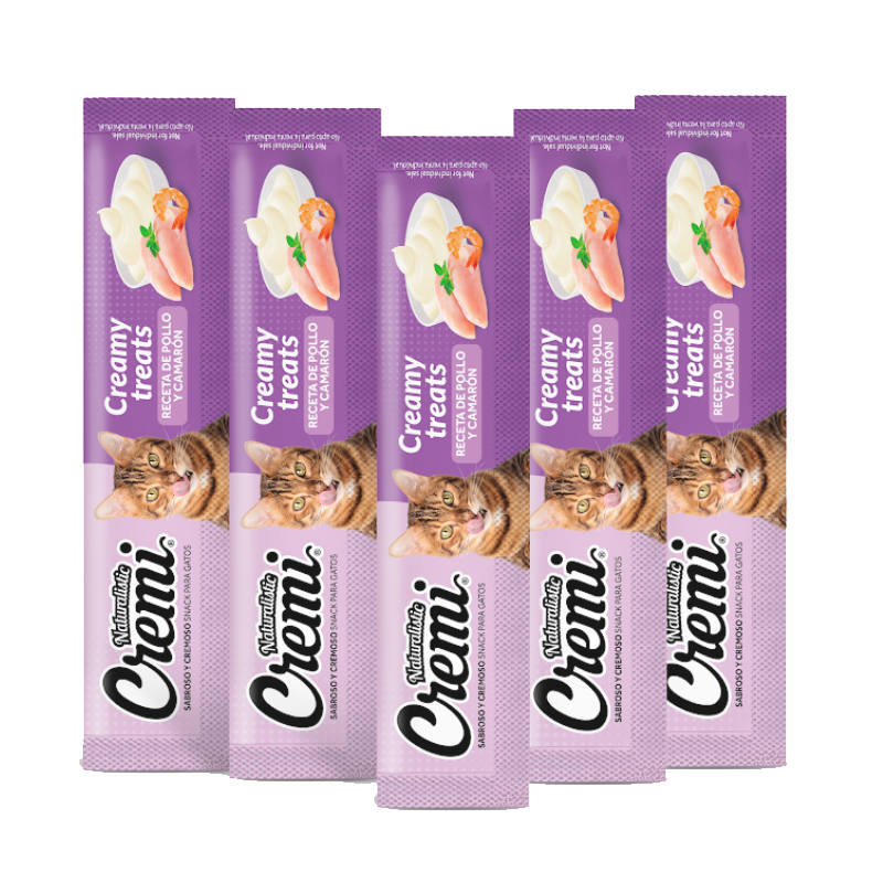 Es un snack cremoso para gatos de todas las edades. Elaborado con carne de pollo, camarón y reforzado con taurina, aminoácido esencial para los gatos. La fórmula además contiene extracto de té verde que tiene un alto poder antioxidante.
